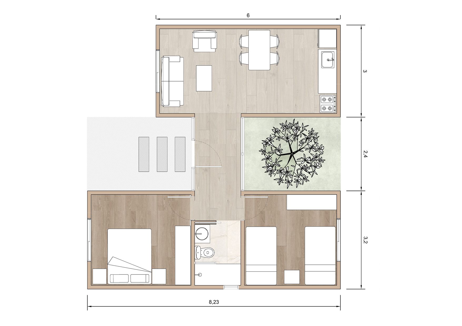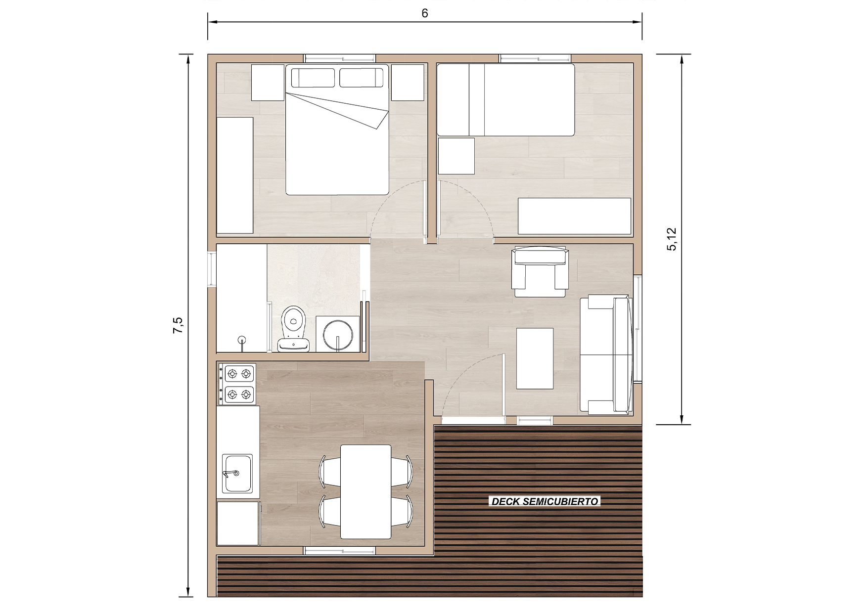 PROTOTIPO CASA BLANCA Opción 30 m2 ó 46,2 m2 en un solo módulo transportable