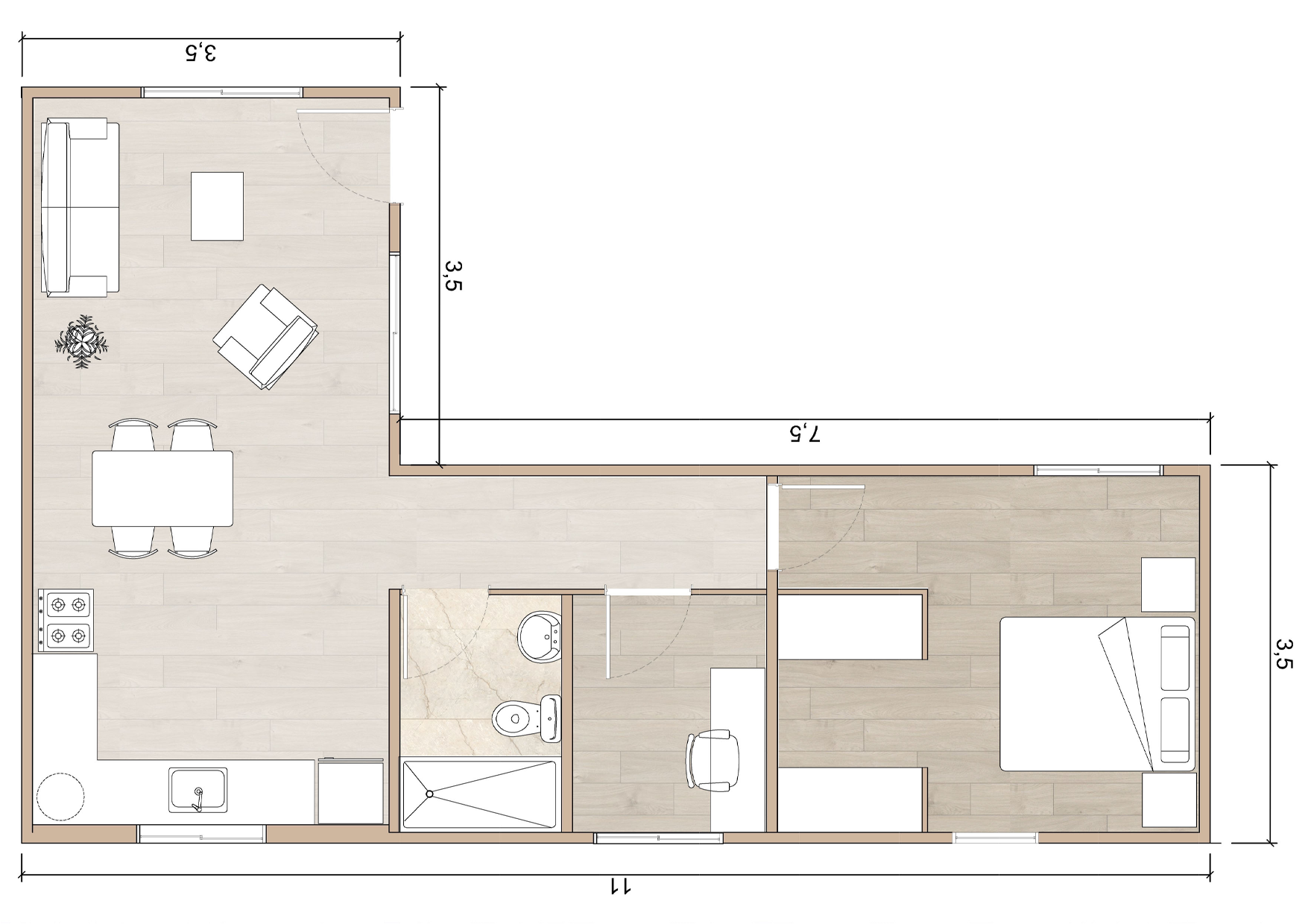 TRANSPORTABLE Y EXPANDIBLE La construcción modular se caracteriza por su flexibilidad y adaptación a cualquier tipo de terreno ya que puede transportarse a cualquier sitio, y siempre tiene la posibilidad de expandirse a más habitaciones, espacios y utilidades.
